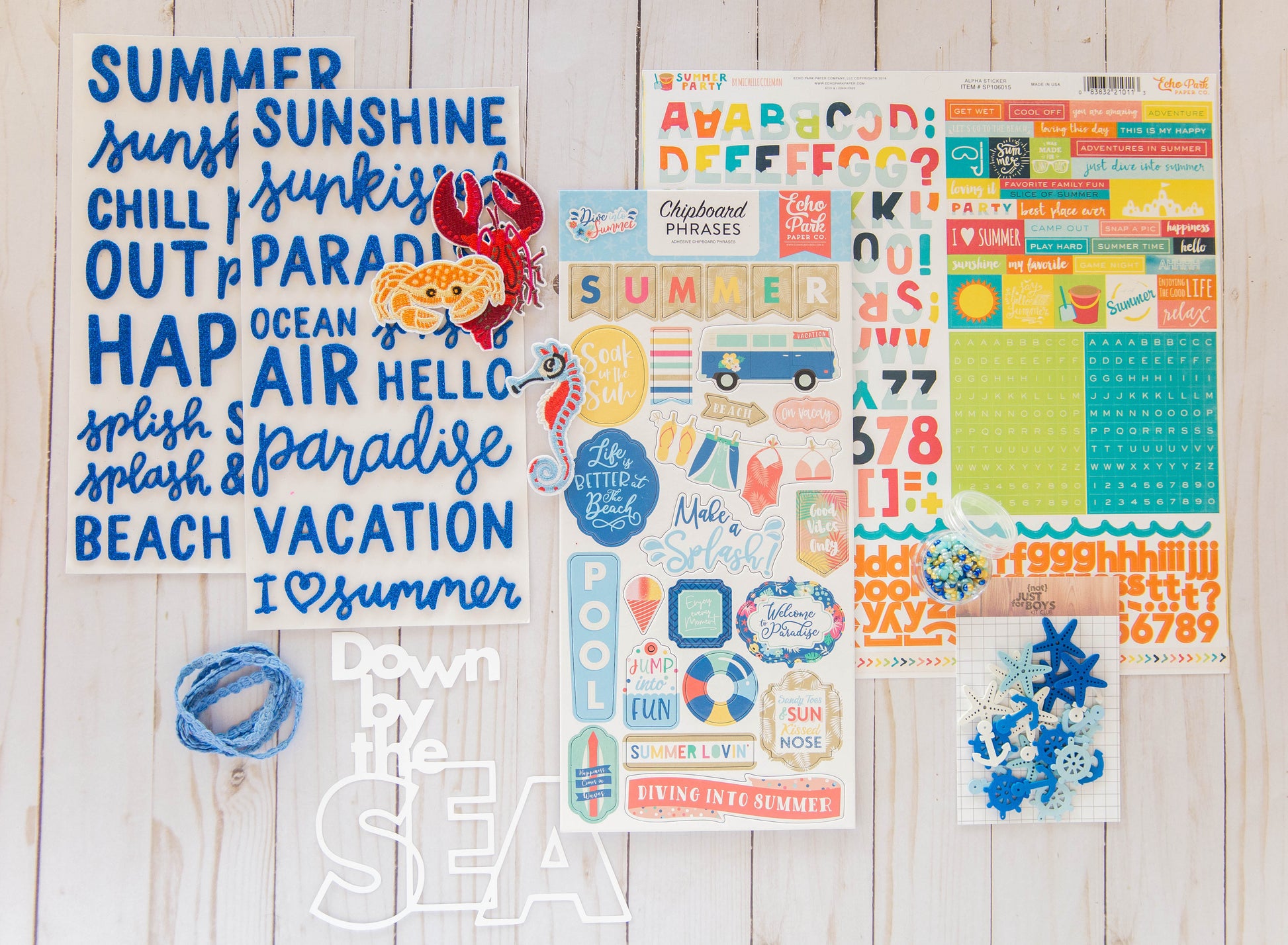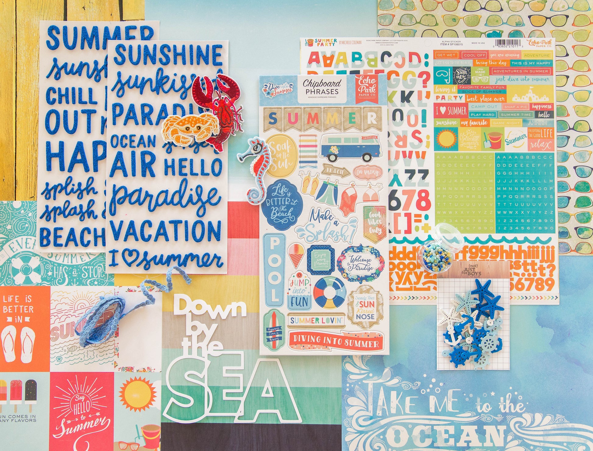 - 1- 6x12 Echo Park "Dive Into Summer" Chipboard Phrase Stickers