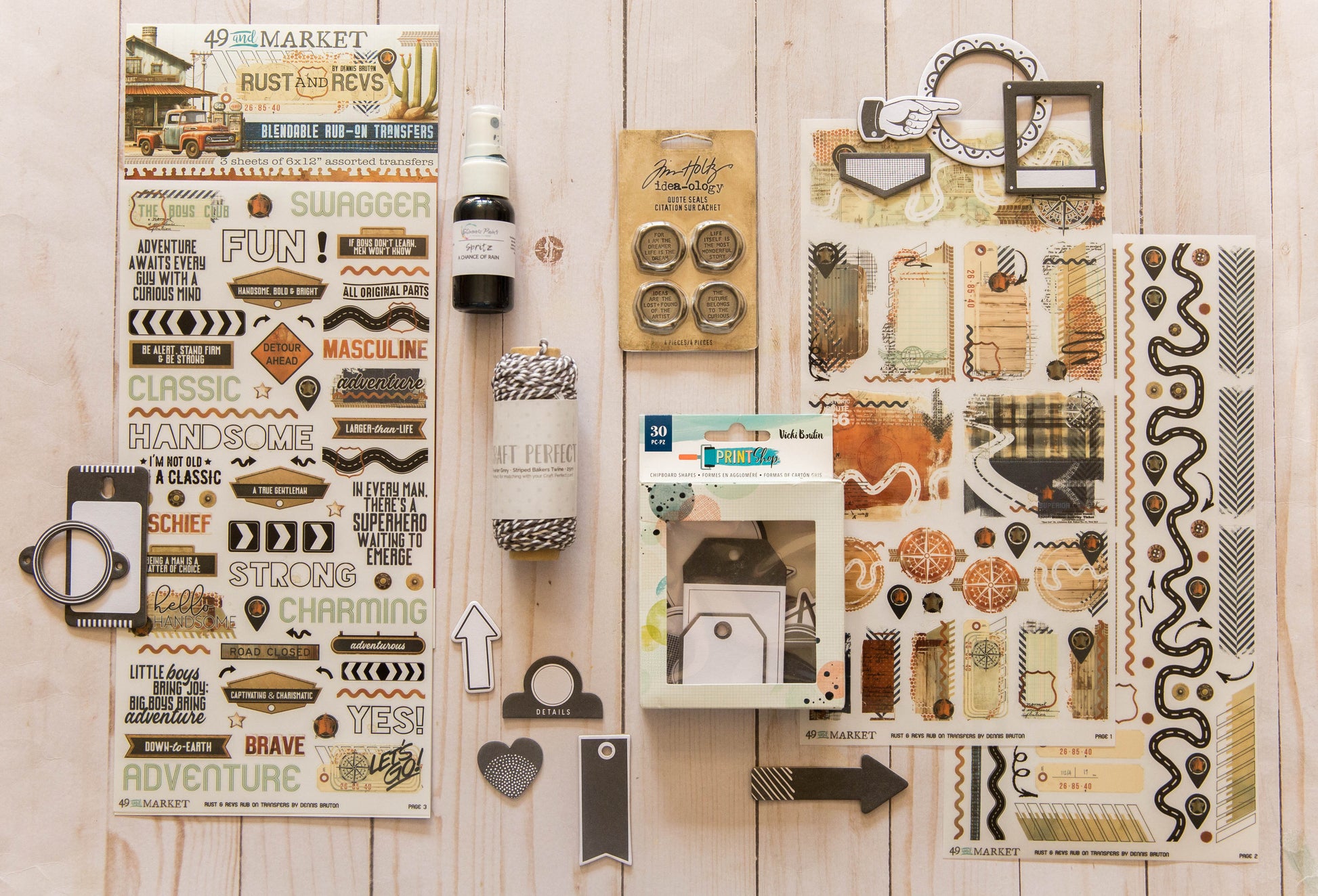 - 49 & Market "Rust & Revs" Rub On Transfers- 3 sheets