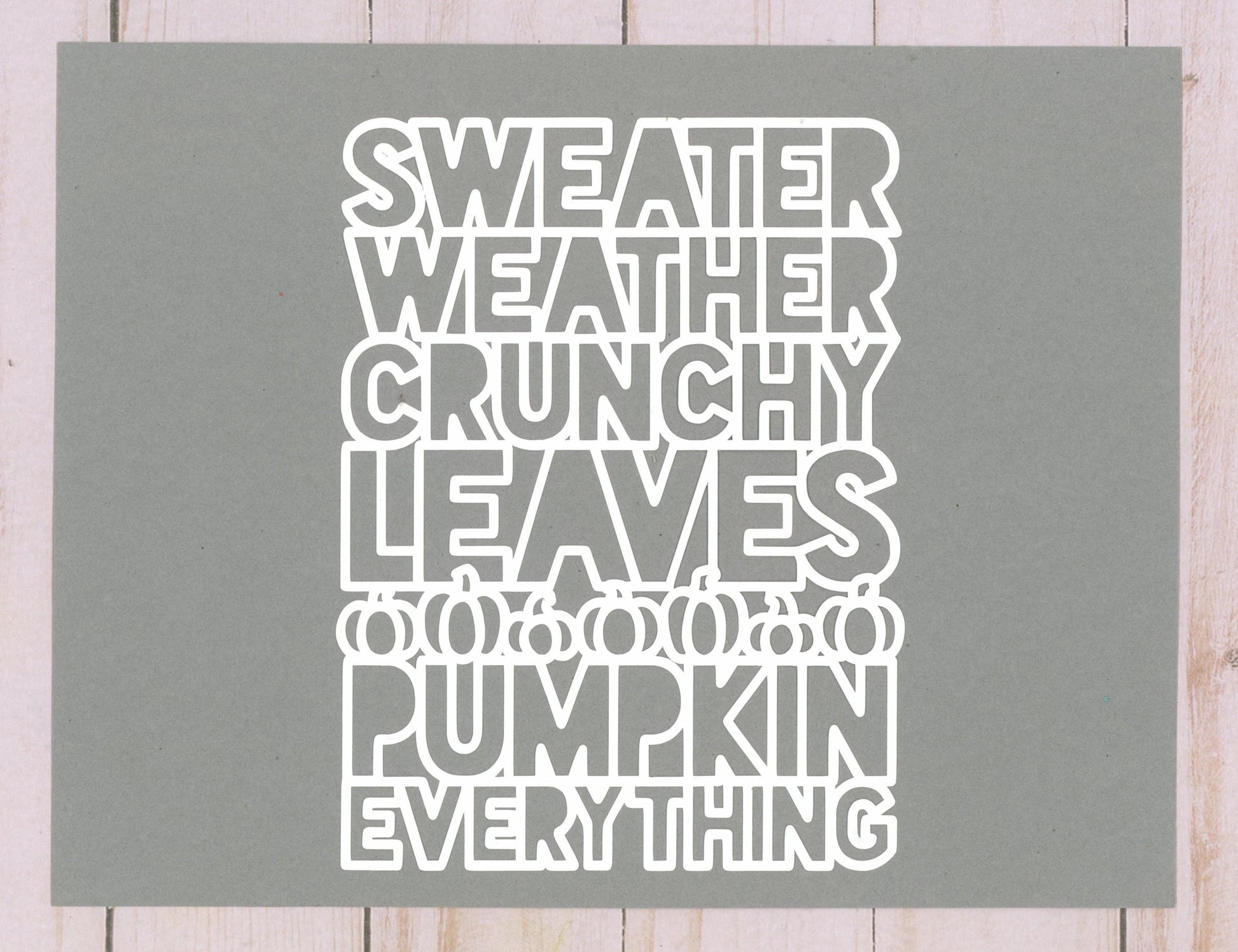 This includes one Fall Phrases cardstock cut designed by Paige Evans and cut on white cardstock, approx. size 5.6"x7.4". This is NOT a cut file, this is a physical product.