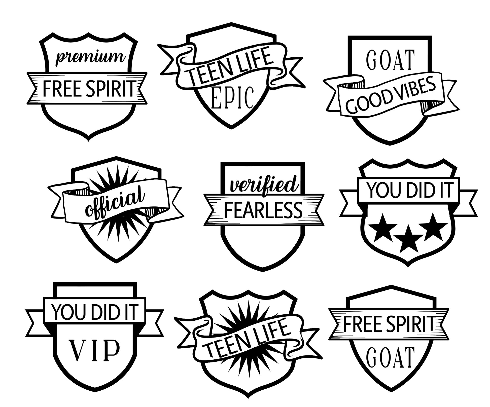 The last photo in this listing depicts how the stamp set can mix and match together with the "Badges" stamp, in combination with fussy cutting, to form a variety of layered images.