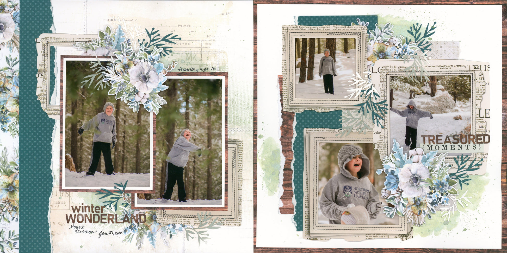 NJFB Page Kits by Meridy Twilling. This page kit includes instructions and supplies to put together 2-12x12 layouts that coordinate to be used as a double page spread, or that can be used separately as 2 single page layouts.